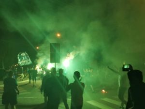 Navijači i fudbaleri su ispred Gradskog stadiona, uz vatromet, baklje i navijačke pjesme, zajedno proslavili petu uzastopnu pobjedu u dosadašnjem dijelu prvenstva.